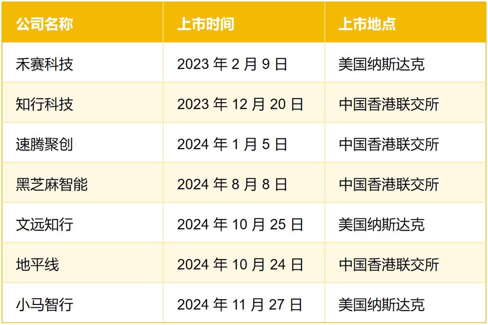 图表:自2023年2月起,无人驾驶公司成功上市。