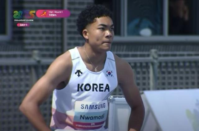 在第一组中国球员何锦邈的比赛中。对于韩国田径球迷来说,他们眼中的焦点是韩国球员乔尔- 金 - 恩瓦马蒂。