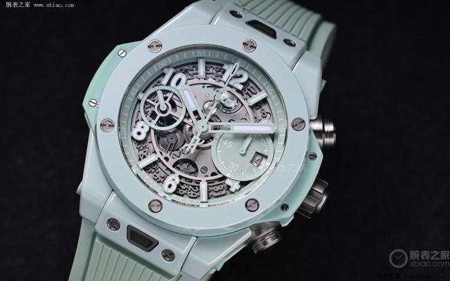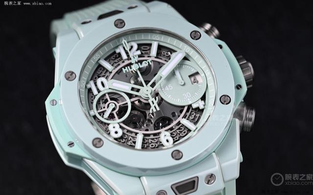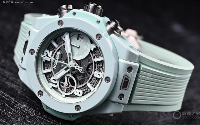 如果您觉得 44 毫米的 Big Bang 表壳有点大,所以这两种新的陶瓷颜色:薄荷绿和汽油蓝。这两种颜色使用较小的 42 mm表壳的尺寸,厚度也是一样的。 14.5 mm。对薄荷绿的官方描述非常相似,陶瓷的颜色就像一些泡泡糖或牙膏来消除口臭。