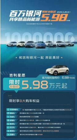 比亚迪率先拉开了这场价格战的帷幕,王朝网和海洋网共计。 22 智能驾驶版车型同时开启大甩卖模式,最高补贴优惠可达 5.3 万元。吉利在 5 月 26 日上线 "百万银河限时补贴价" 活动。其中,吉利星愿参考价格为 6.88 万元起,经限时补贴后,起售价格降至1万元。 5.98 万元起,如果叠加旧车置换、国补、省补,最低价格可以打到最低。 3.7 万元起;银河 L6 等待车型也降到了 6.98 万起。零跑、智己、上汽通用等车企也不甘落后,纷纷宣布各自的补贴方案,