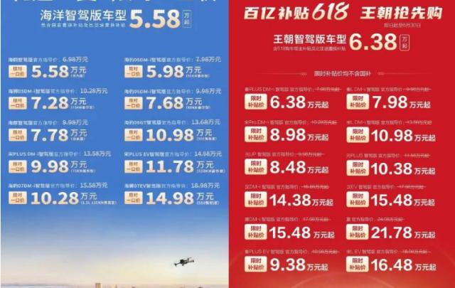 这次比亚迪的主要降价车型主要是低端车型,降价后,5.58 一万元可以买一辆海洋智能驾驶版,6.68 一万元起就可以买到皇朝智驾版。