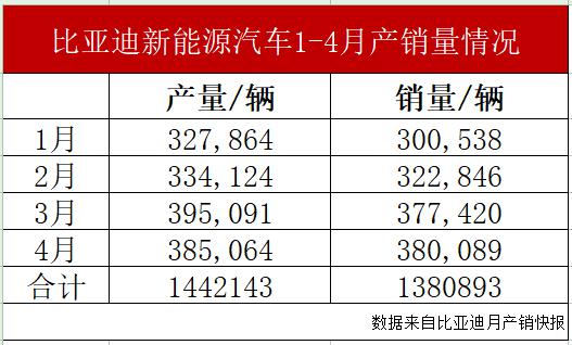 就销售情况而言,今年 1 — 4 月份,比亚迪生产新能源汽车 144.21 同期销量为万台 138.08 万台,约有 6 产销差距万。处理一些老款车型的库存成为比亚迪降价的原因之一。