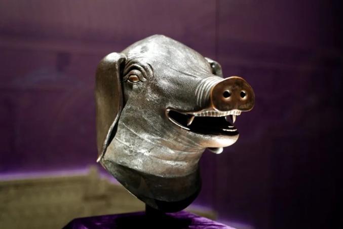 展览核心部分“盛世聚会”聚焦圆明园十二生肖兽首铜像。本次展览共展出了7个圆明园兽首,其中虎头、牛头、猴头、猪头四个兽首为原件,属于国家一级文物,鼠头、兔头为复制品,马头为仿制品。