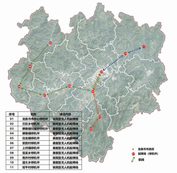 龙泉将建设11架无人机起落场地。