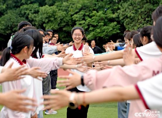 安徽省淮南:高三学生“击掌给油”,放松心情迎接高考。