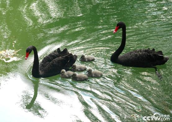 “遛娃”,北京颐和园黑天鹅河道。