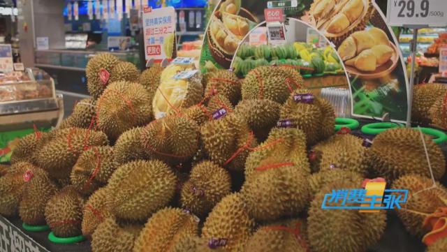 北京一家生活超市,一进门最显眼的地方,就是来自泰国的金枕榴莲。