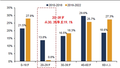 重点转折点发生在2018年,20-39岁的人面临着角色转变。