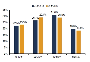 从消费者的年龄分布来看,20-39岁的人口是目前的主要消费者。