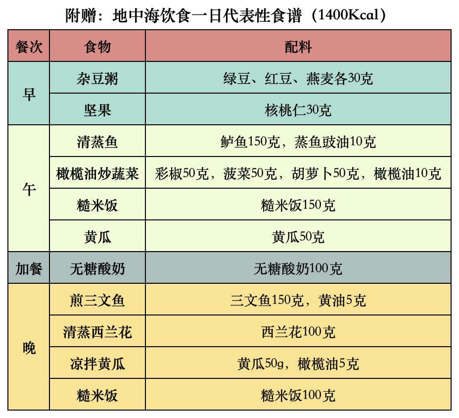 温馨提醒:除了均衡的饮食结构,地中海饮食也提倡健康的生活方式、乐观的生活态度、适当规律的运动等。