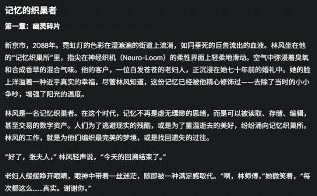 一说一,看完 DeepSeek 世超写的小说,心情很复杂。这部小说甚至可以说比大多数网络文章都要好,而且速度和质量,大模型都很恐怖。
