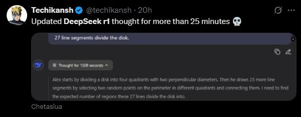 R1-0528旨在提高模型的深层思维能力。 似乎有意延长了探索大模型的时间。然而,这种变化的具体效果取决于你自己的需求。毕竟,如果你想要一个问题。 25 分钟,即使答案更加完美,作为用户的确有点急。
