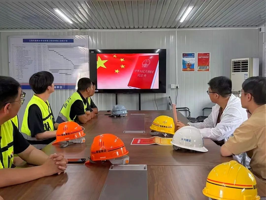 宣传教育活动系统地介绍了民法在保障公民权利、规范市场秩序、促进社会和谐方面的基本作用。结合水利工程的实际情况,重点解读了合同履行、安全生产、劳动者权益保护等关键条款。,并围绕劳动争议、工伤赔偿、文明施工等常见问题,以案例方式进行解释,引导现场人员增强依法合规理念。