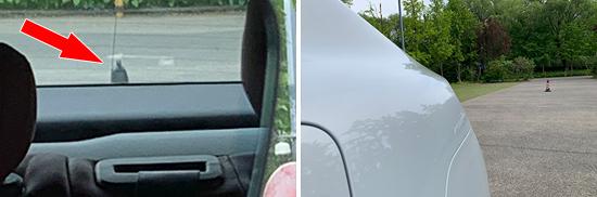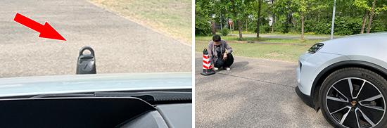 在后视线检测中,桩桶仍然固定放置,然后移动车辆,直到桩桶的上缘可以观察到。因为配备了流媒体后视镜,经过实际测量,后视线测得的距离是 在测试过的同级别车型中,13.255m处于中游水平。