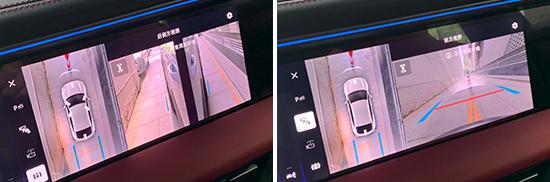 评估车选择了 360 全景图像,方便驾驶员检查车辆周围的情况。图像清晰度令人满意,车辆周围的畸变控制更好。同时,图像还提供辅助线和多视角查看,可以随意转向,日常便利性令人满意。