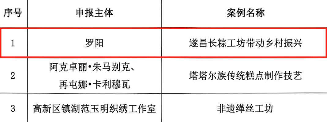 遂昌县以“文化为火,产业为核心,创新为引领,展销为抓手”,打造遂昌长粽子非遗工坊。在车间建设中,深入挖掘长粽子的文化底蕴,提高传统技能;培养长粽子的文化基地和文化村,培养传承就业的人;制定行业标准,实施标准化生产,形成“公司” 基地 非遗工坊新模式的合作社。