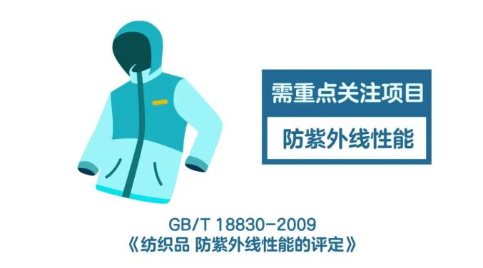 国家标准GB//国家标准T 18830-2009《纺织品防紫外线性能评定》规定,当40时,防紫外线产品应在产品上有明确的标识。<UPF≤UPF4050时标+,当UPF>UPF50时标为50时标 。消费者在购买防晒服时要注意检查商品标签是否标有GB/T 18830-2009标准和UPF值,或FZ/T 74007-2019“户外防晒皮肤衣”标准,是判断其是否是防紫外线产品最直观有效的依据。