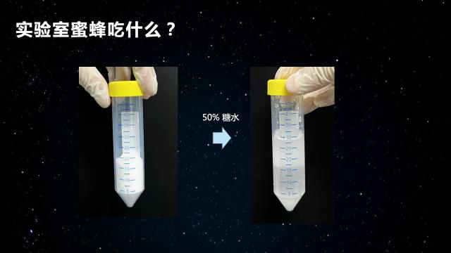给大家一个直观的印象,我们实际上也在实验室里养蜜蜂,实验室里的蜜蜂吃什么?