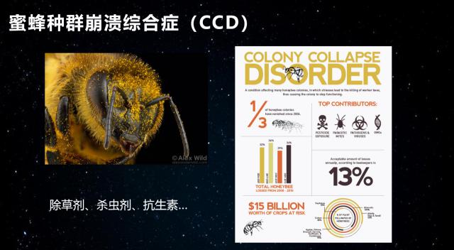 本世纪初,蜜蜂物种崩溃综合征爆发,导致年均近一年。 50% 蜂群的损失。事实上,蜜蜂种群的数量正在严重减少,但目前还没有证明蜜蜂物种崩溃综合征的原因。然而,科学家们普遍认为,各种环境毒性物质,如抗生素滥用引起的环境残留物、灭草剂和农药在田间的广泛使用,都是蜜蜂物种崩溃综合征的重要原因。