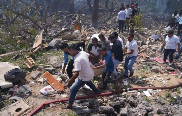 6 月 12 日本,在印度古吉拉特邦艾哈迈达巴德,人们在客机失事现场运送受害者尸体。新华社发布