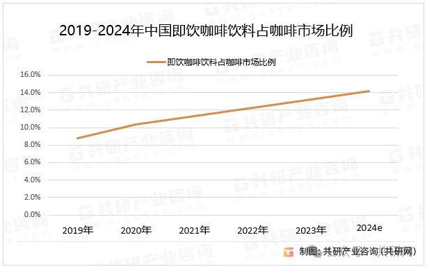 虽然目前咖啡市场的主流消费类型仍以现磨咖啡和速溶咖啡为主,但即饮咖啡的销售比例相对较低。 [ 4 ] 但是,随着消费者生活节奏的加快,即饮咖啡的便携性和及时性,逐渐成为越来越多人的日常选择。根据共同研究行业的咨询报告,2019年 年 -2024 2008年,中国即饮咖啡饮料占咖啡市场的比重持续增长。 [ 5 ] 根据《2024 2024年咖啡品类在线消费和行业洞察报告显示, 上半年即饮咖啡的销售热度同比增长 104.3%。 [ 4 ]