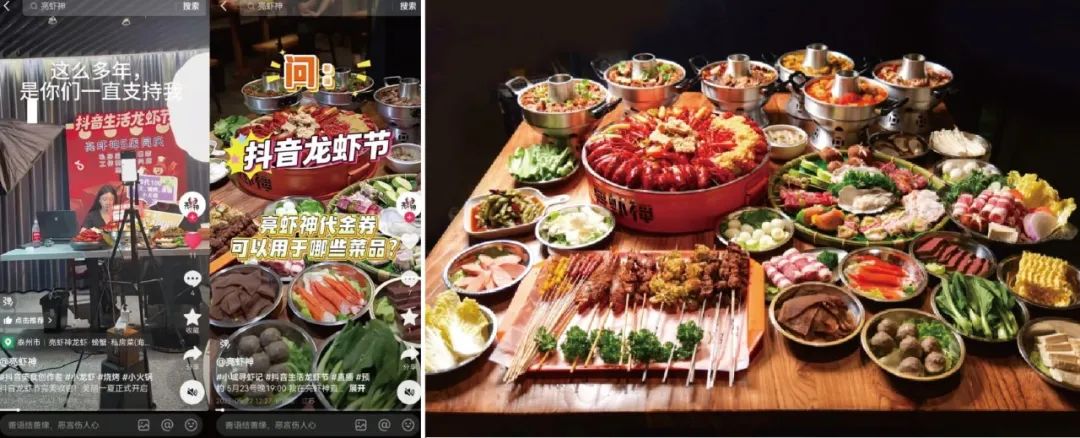 深耕江苏泰州8年亮虾神龙虾,深知此道。以“三节同庆”为主题,在刚刚过去的端午节和儿童节期间,亮虾神龙虾在抖音精心策划了专场直播。他们没有采取简单粗暴的折扣,而是制定了分层策略:一方面,推出了大大小小的优惠券,降低了新客户的早期采用门槛;另一方面,为了提高直播间用户的留存率,商家在直播中分发了限时福袋,包括高价值的招牌菜,有效提高了客户的停留时间,增强了直播间的互动和粘性;此外,为了保证本次活动的成功,虾神龙虾还与当地大咖合作进行了多轮预热。成功地为直播节省了大量的流量。最终,亮虾神龙虾在直播间的表现翻了一番。