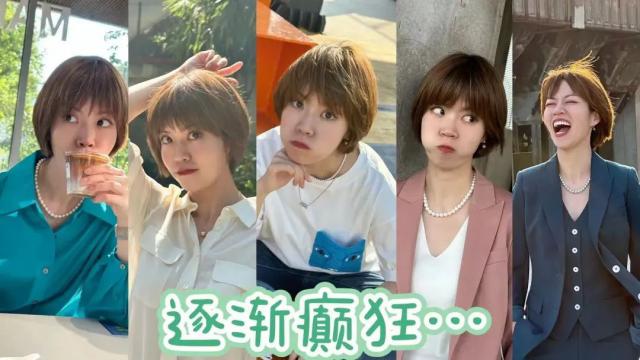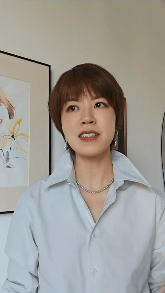所以你看,在我的视频中,基本上大部分都是肩膀上有筋骨的衬衫,也就是装饰自己的肩膀。然后我的发型经历了无数的试错,发现短发最合适。