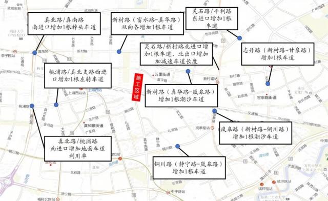 为了减少建设对区域交通的影响,市公安局交管总队会同普陀支队,对新村路、岚皋路、铜川路等重要绕行道路及周边路网进行了工程改造,深入挖掘了道路潜力,提高了道路通行能力。