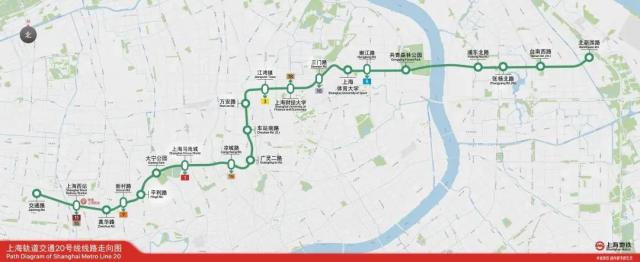 20 号线一期东段及东延伸工程线路将通过静安区、虹口区、杨浦区、浦东新区,主要沿广中路-广灵一路-水电路-场中路-政立路-嫩江路-洲海路走形。线路全长约 21 公里,全部采用地下敷设方式, 14 车站,平均车站间隔约为 1.5 公里。其中包括换乘站 5 座位,分别是凉城路站(和 19 号线换乘)、江湾镇站(和) 3 号线换乘)、上海财经大学站(和) 18 号线转乘)、三门路站(和 10 号线转乘)、嫩江路站(和 8 号码转换)。