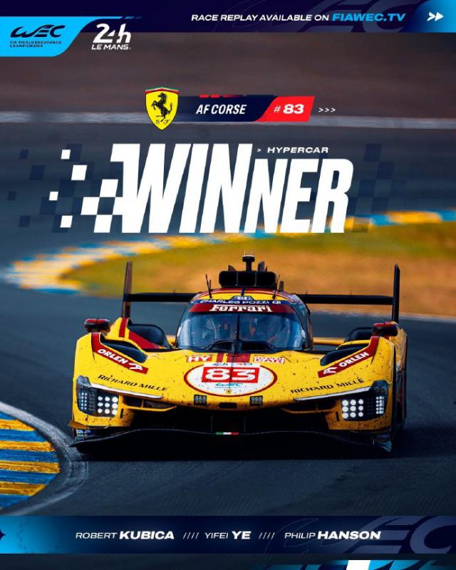 法拉利队赢得了勒芒 24 小时耐力赛冠军,中国车手叶一飞创造了历史