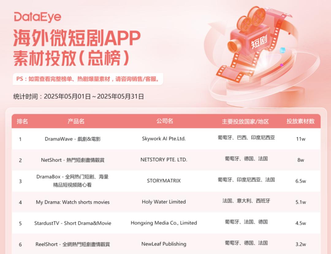 一款APP,如果想要被更多人了解和使用,营销是一种非常常见的营销方式,以短剧为例,DataEye短剧观察数据显示,今年5月,昆仑万维的DramaWave是海外微短剧APP材料投放的第一名。