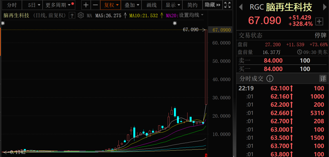 在热门股票方面,脑再生技术上涨了328%以上,触发了停牌。这是一家早期的生物科学公司,致力于研究、开发和商业化中药,可以治疗神经认知障碍和衰退,尤其是注意力缺陷多动障碍。(ADHD)还有孤独症谱系障碍(ASD)。但是,截至2024年6月底,公司还没有从销售任何产品中获得任何收益,2021-2024财年,公司收入为0。