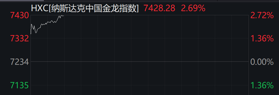 中国股票普遍上涨,纳斯达克中国金龙指数上涨近2.7%。