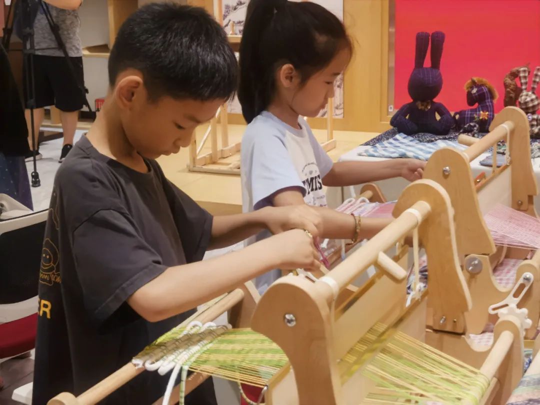 当古代纺织机遇到“10后”时,可爱的宝宝会碰撞出怎样的火花?6月14日,文化自然遗产日,人文松江活动中心云间书房成为“非遗潮玩基地”。一场充满趣味和创意的“素色裁云”手织体验活动开启,10多名儿童亲自编织,制作出漂亮的手机包。