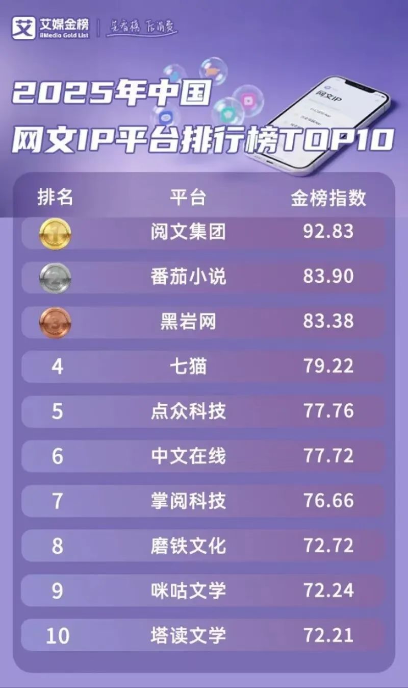 2025网文IP平台排名TOP10,艾媒咨询发布,黑岩网“突袭”
