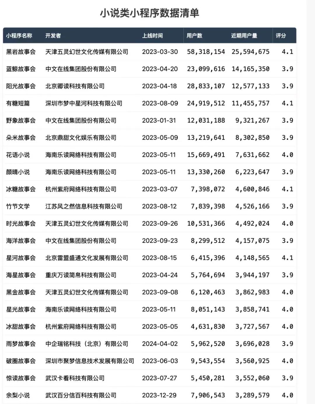然而,短篇小说的用户规模并不小。单看小程序市场,根据网友发布的数据清单,今年2月,头部小程序的用户数量达到1000万。