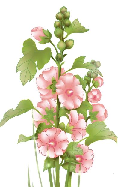 蜀葵是一种高草本植物,茎干非常笔直,高度可以达到成人的身高。花瓣单瓣或重瓣,颜色多样,常见的有红、黄、白、紫、粉等。随着茎的向上生长,蜀葵的花朵会逐渐盛开,因为单朵花开得不久,所以会出现上部花朵盛开,下部花朵已结果的情况。唐代诗人岑参考蜀葵这一特点,劝人活在当下“昨日一花开,今日一花开。花儿今天刚刚好,昨天花儿老了。始知人老不如花,可惜落花君莫扫。人生不能长青少年,莫惜床头沽酒钱。请有钱到酒家,君不见,蜀葵花。”