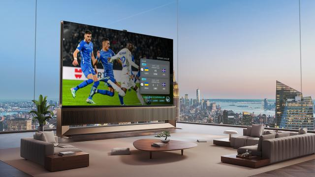 第二,在画质呈现方面,海信 100 寸大屏幕“不止于大”,其产品带给观众的既有“大”的场景,又有精致、真实、生动的细节。海信自主研发“信芯” AI 画质芯片从根本上对画质进行深度校准,再结合 RGB-Mini LED 自研显示技术搭载高刷黑曜石屏幕,让球赛的画质“红得正、绿得准、蓝得透、超鲜活”,不再存在传统电视观看比赛的抖动、刺眼、拖尾等问题,也消除了传统电视观看比赛的环境光反射问题。使用户能够沉浸在任何光源中,从各个角度观看比赛。
