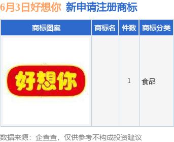 证券之星消息,根据天眼查 APP 资料显示,最近好想你健康食品有限公司新递交 1 商标申请。商标申请的详细信息如下:
