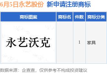 证券之星消息,根据天眼查 APP 数据显示,永艺家具有限公司近日新递交 1 商标申请。商标申请的详细信息如下: