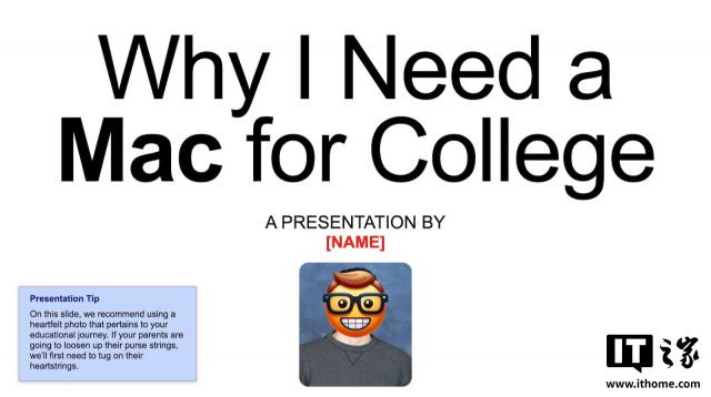 《The Parent Presentation》事实上,这是一个可定制的ppt演示文稿,旨在向父母解释为什么。 Mac 它是大学生常用的工具。这份演示文稿是为了 PowerPoint、Keynote 和 Google Slides 提供免费下载格式,学生可以根据自己的需要进行定制,并向家长展示,以说服他们为自己购买。 Mac。