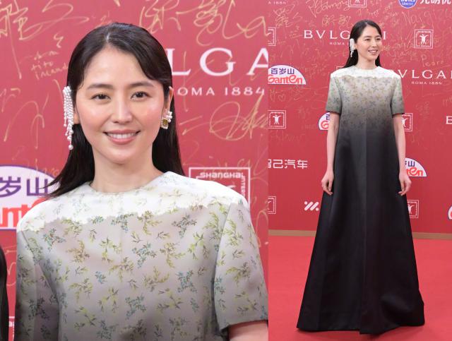 日本女演员长泽雅美穿着一件白色、灰色和黑色的渐变连衣裙,这是八先生无法理解的。与现场其他女明星的造型相比,连平淡都不算,珍珠耳环的组合增添了不少简约。