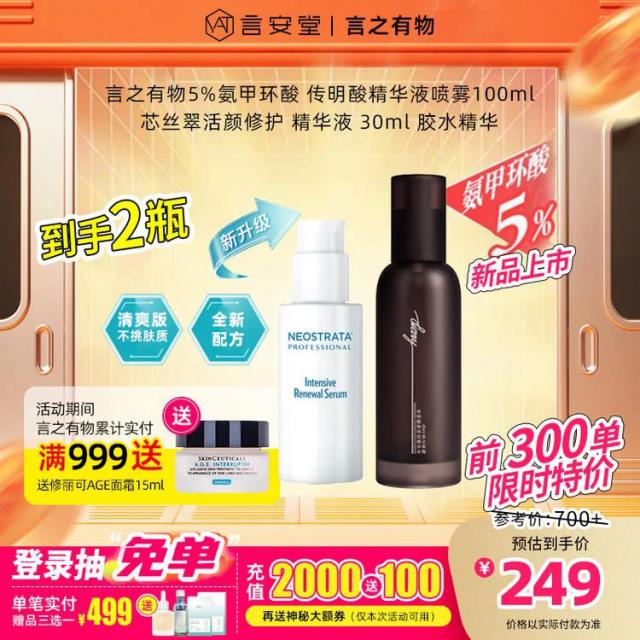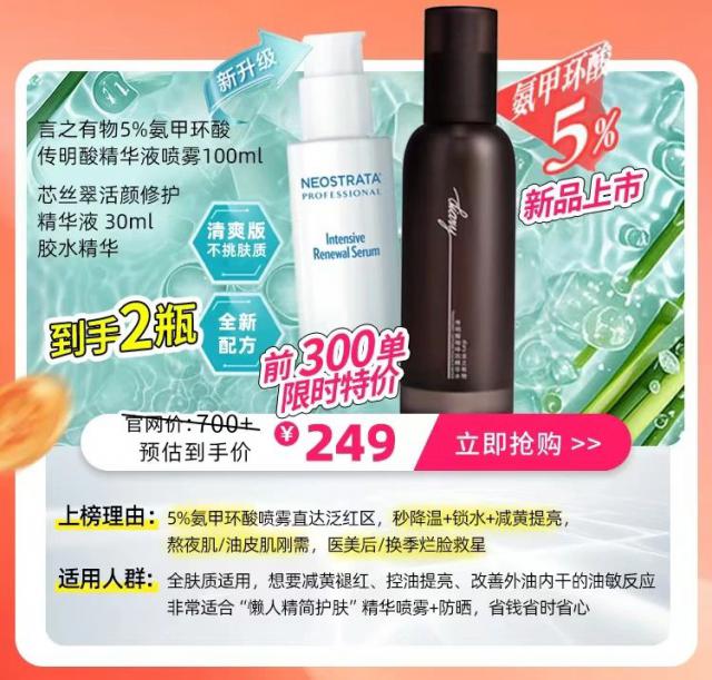 一瓶 30ml 清爽版胶水精华,加上一瓶氨甲环酸喷雾。 100ml,只要 249 元 ~