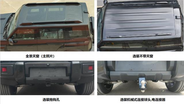 根据选择信息,新车将提供不同形状的轮圈、行李架形状和上车踏板。此外,新车还可以选择尾部拖钩和不同形状的尾部储物袋来扩展车辆功能。