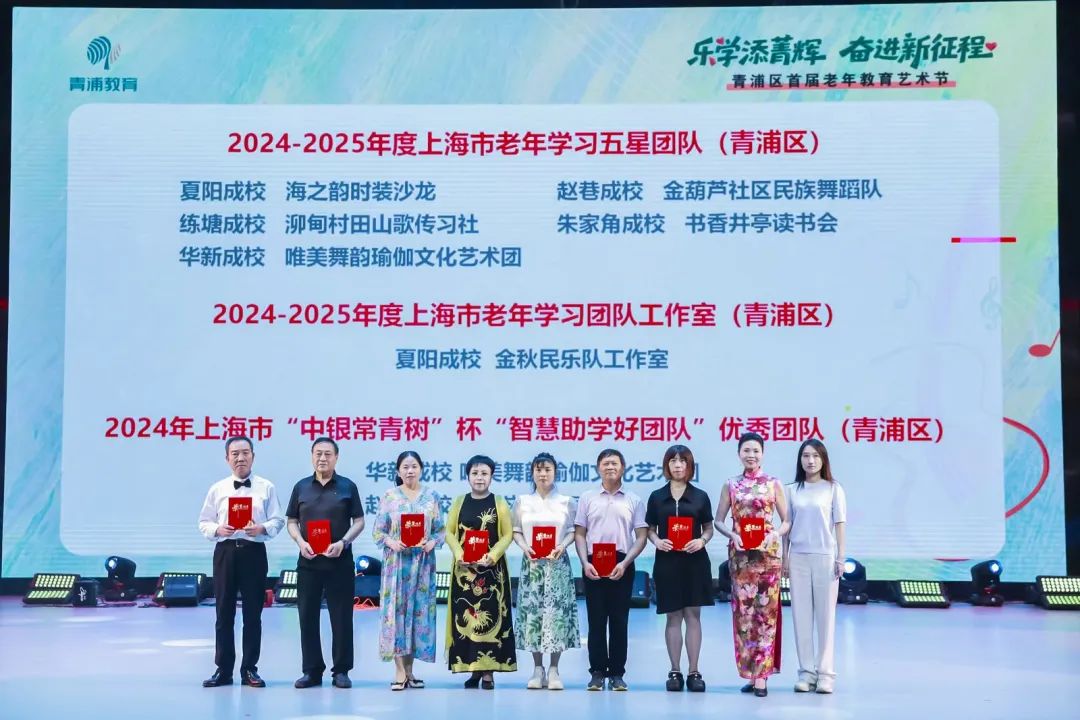 活动为2024-2025年上海市老年学习五星团队、2024-2025年上海市老年学习团队工作室、2024年上海市“中银常青树”杯“智慧助学团队”优秀团队、2024年上海市老年教育品牌课程、2024年上海市老年教育“居村委员会特色学习点”颁奖。