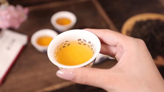 第一,金圈环绕,茶汤橙红如琥铂,清澈透亮,杯子沿形成明显的“金圈”,它是茶黄素含量高的标志。