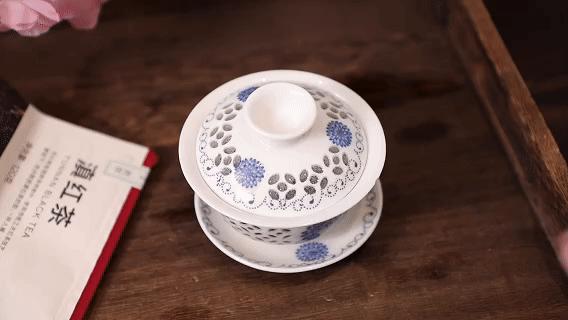 开水倾注,紧致均匀的茶叶瞬间铺开。