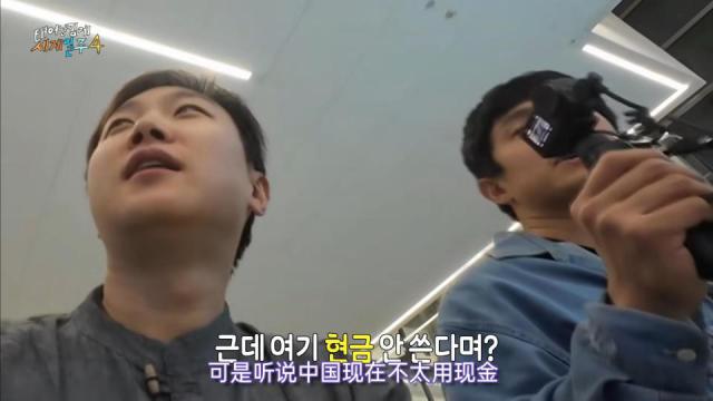 刚到机场的时候,成员们打算去柜台取现金,但是很快就被告知“不需要换钱”,“别人现在不怎么用现金,都用移动支付”。