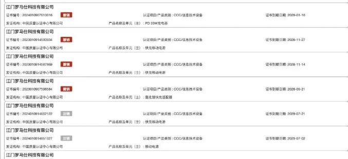 6月20日晚,《国家商报》记者在多个充电宝品牌宣布召回有自燃风险的移动电源后,在国家市场监管总局国家认证认可信息公共服务平台上发现,知名电池供应商安普瑞斯(无锡)有限公司的多个相关电池和电池产品3C认证证书处于“暂停”状态。另外,罗马仕、安克创新、倍思、绿联等多个移动电源品牌的3C认证证书也被暂停。上述证书状态的变更时间大多从六月初开始。
