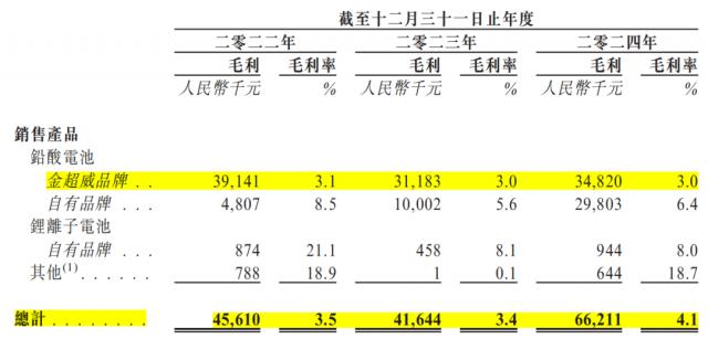 但随着快驴科技对自有品牌电池的推广,其收入结构发生了变化。2022 年,其 95.1% 收入来自金超威品牌电池的销售, 2024 年金超威对公司营收的贡献降至 70.6%。在毛利率方面,自主品牌也明显高于经销商品。